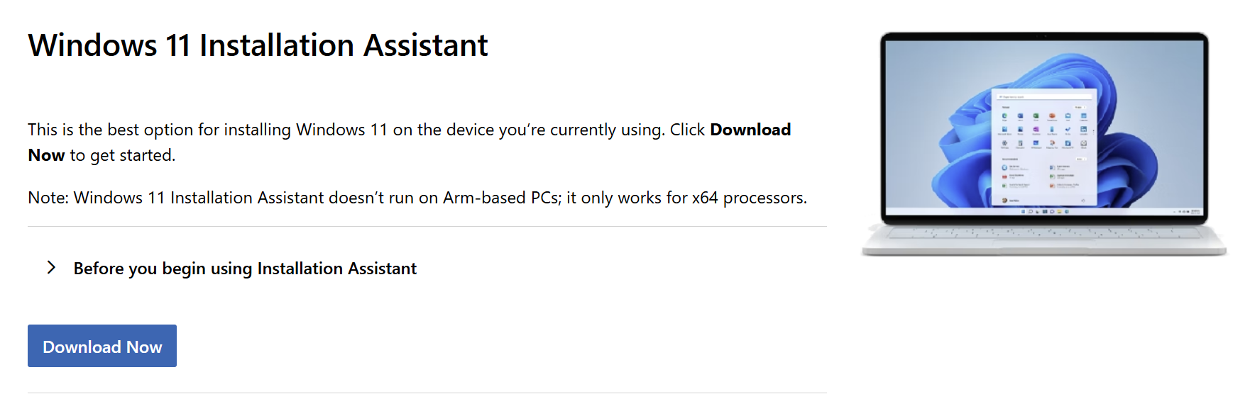 만약, 자동 설치가 잘 안되는 경우, 마이크로소프트 공식 홈페이지에서 Window 11 다운로드 페이지에서 Windows 11 설치 도우미를 내려받아 수동으로 업그레이하세요.